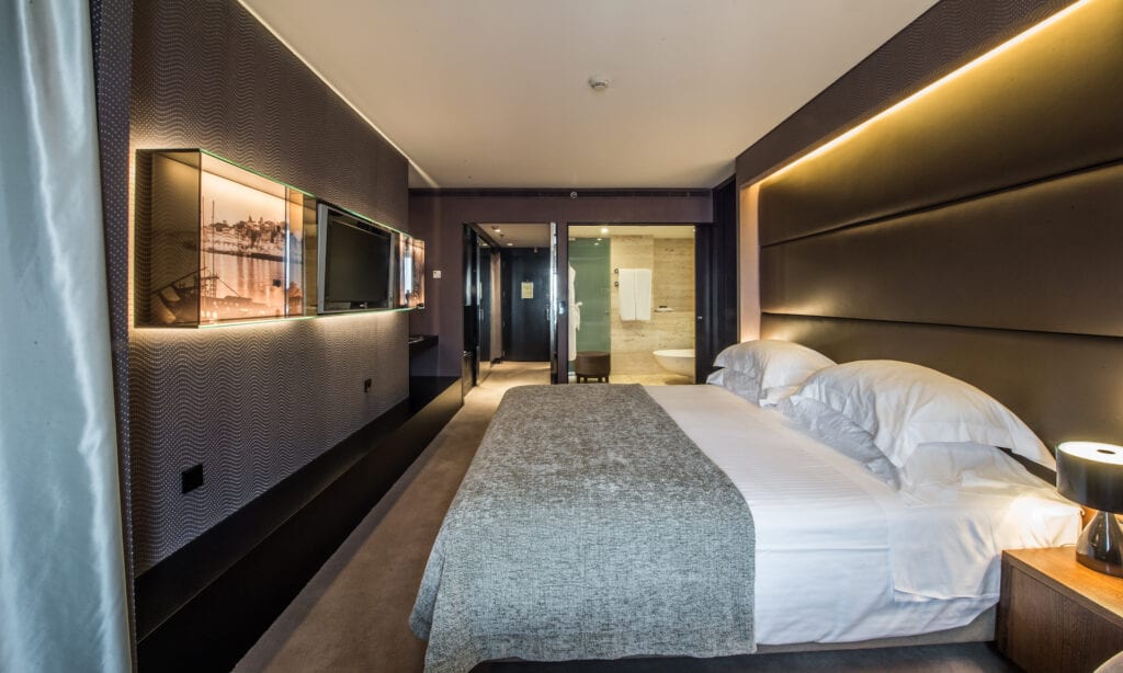 The 251-room Palácio is first and foremost a business hotel and thus lacks the historic charisma of some of Porto’s other accommodation options. Nevertheless, it has a sleek and sophisticated feel that will appeal to those who enjoy travelling in style. Porters in chauffeur hats wait at the hotel entrance to whisk luggage through the revolving glass doors, and inside, mirrored lifts and gold chandeliers decorate the expansive lobby.